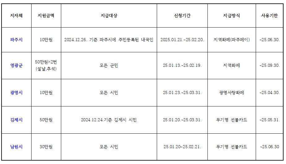 지급 시군: 파주시, 영광군, 광명시, 김제시, 남원군