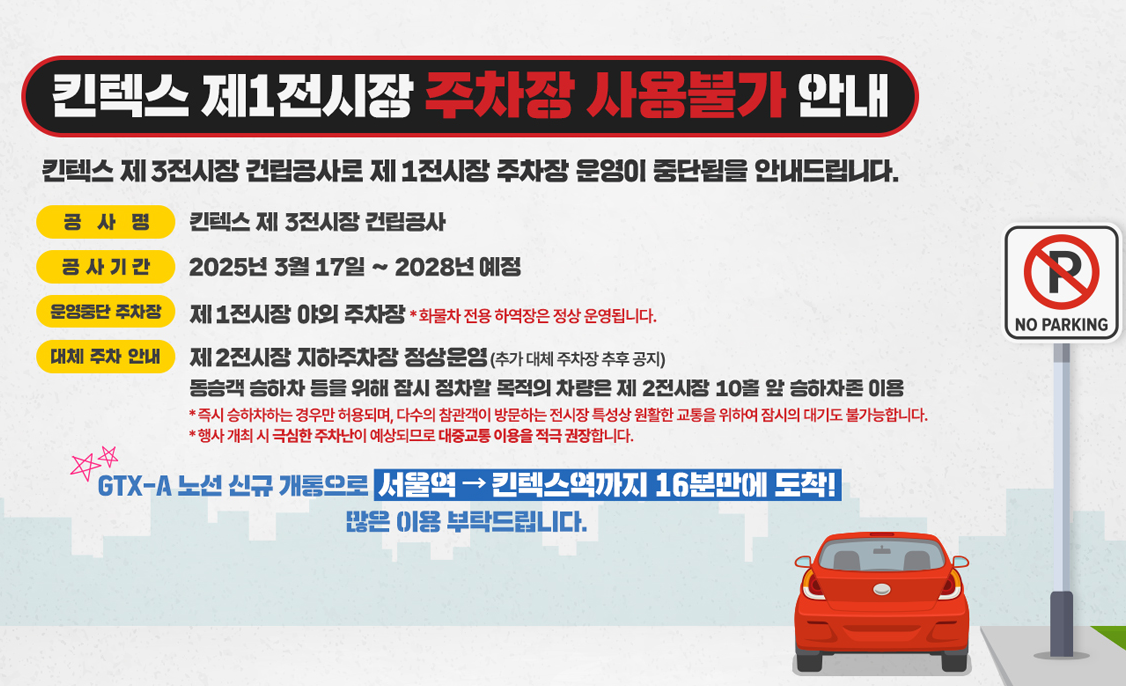 킨텍스 제 3전시장 건립공사로 제1전시장 주차장이 중단되오니 주차에 참고하시기 바랍니다.