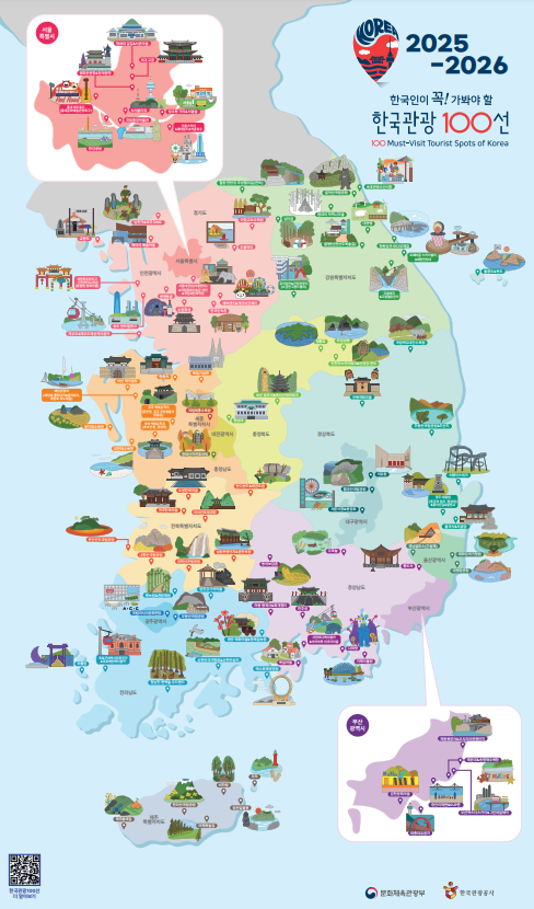 한국 관광공사가 소개하는 2025~2026년 한국관광 100선 바로보기 ↓